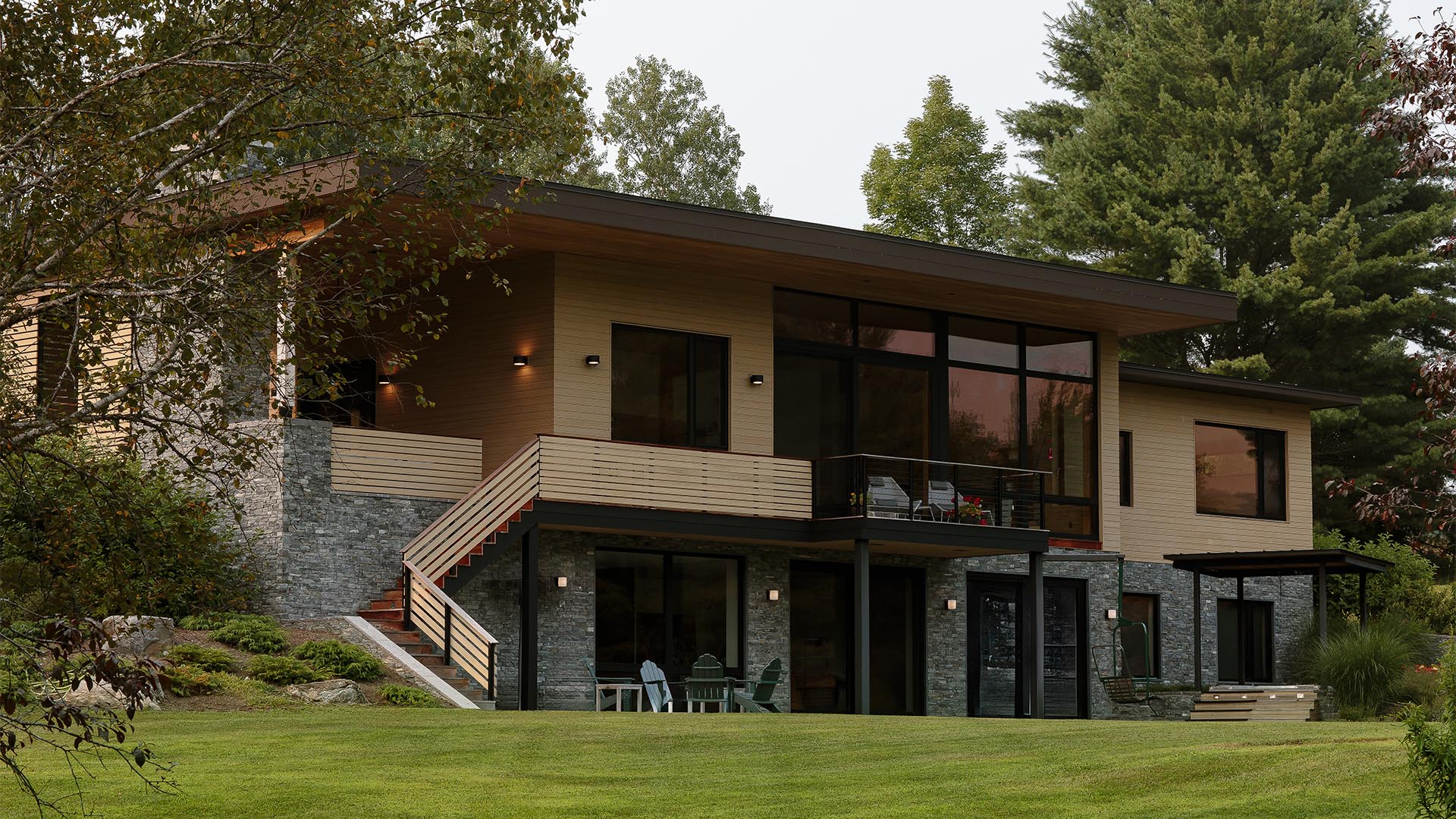 With views across the Stowe Valley to the Green Mountain Range, this traditional Douglas fir timber-frame home was a dream come true for an active young family. Cedar clapboard and shingle siding coupled with timber framed exterior decks and screened porch complete the rustic exterior. The interior is highlighted by many fine details, including several custom built-ins and vanities, as well as craftsman stair cases. Radiant heated flooring gives warmth without detracting from the beams or woodwork, and acid etched concrete flooring on the lower level provides an attractive, durable surface for a guest suite and media room. An ample mud room replete with doggie shower exemplify the customization and attention to detail.